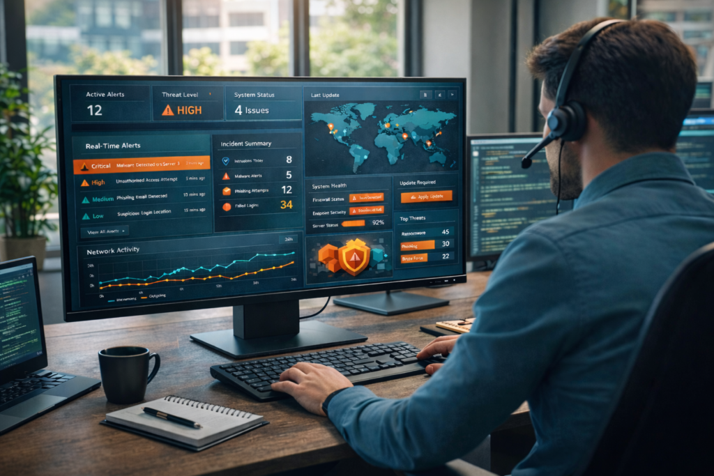 Voor organisaties met hogere beveiligingseisen integreren we Blackpoint Cyber. Deze dienst biedt 24/7 monitoring, menselijke dreigingsanalyse én directe respons op incidenten.
